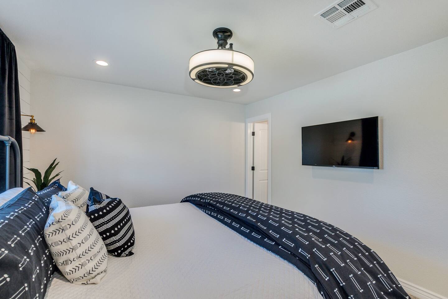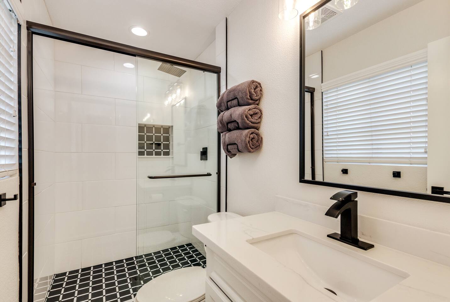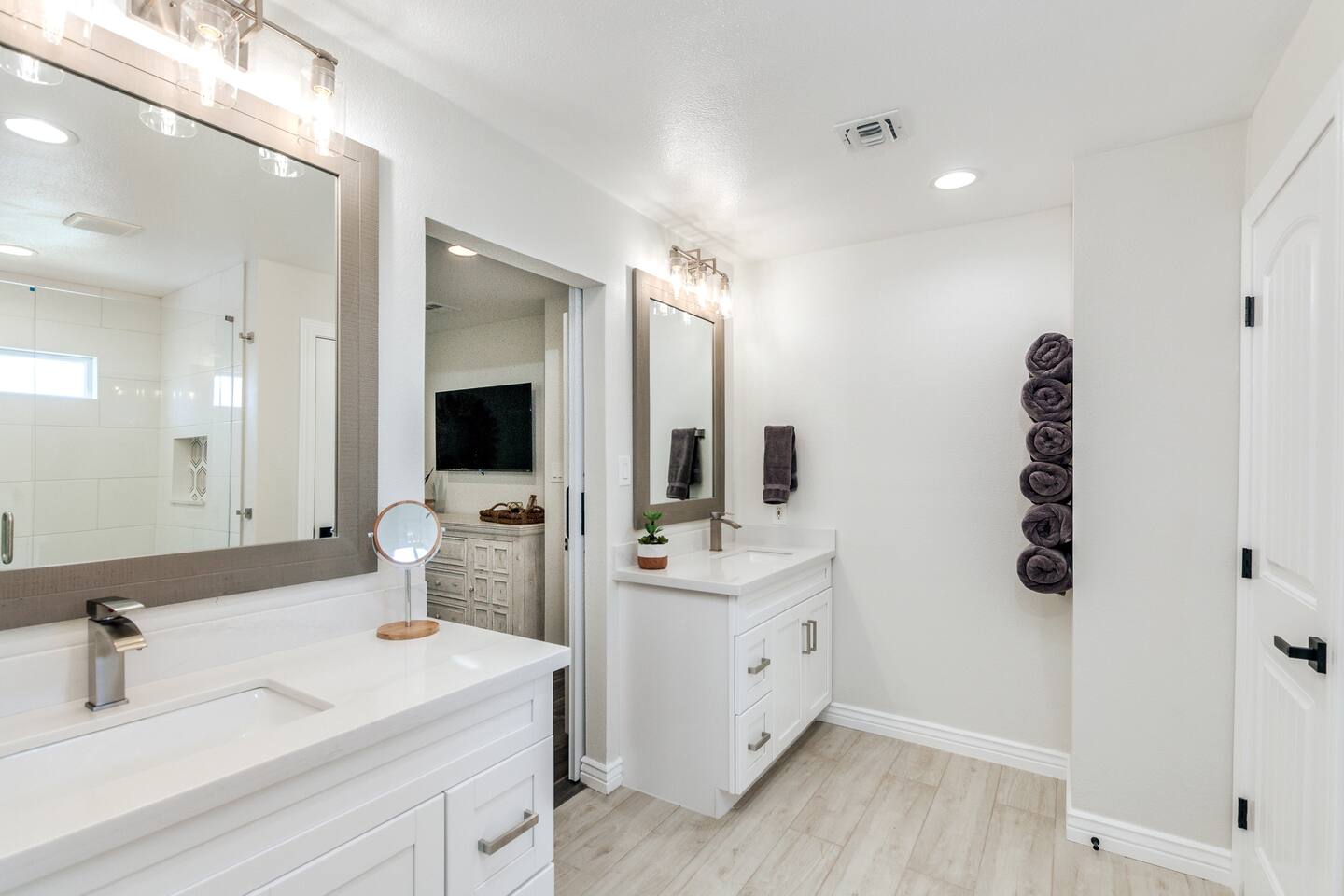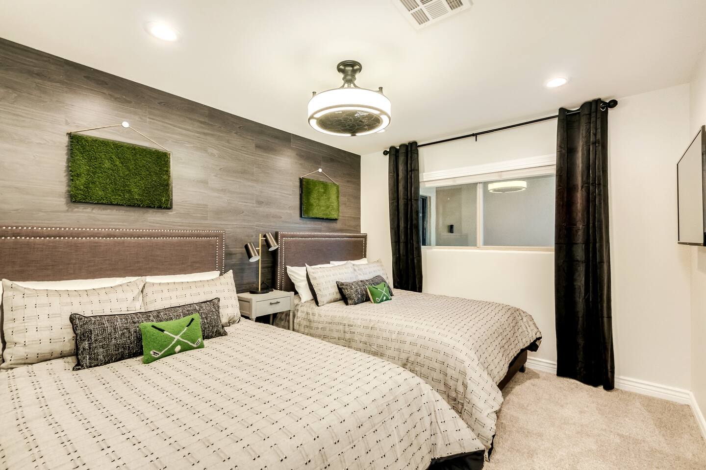 Relax inside with this beautifully remodeled four bedroom three full bathroom house with private pool! There are 10 large screen TV in this house including 65" entertainment system in Family Room. The family room, kitchen and dining room are large and open for a great entertaining space. Home also has custom Game room with (4) 55" large screen TVs, tons of fun!! The backyard also features a large swimming pool, outdoor dining table, fire pit, BBQ, Jacuzzi, corn hole game, and of course large screen TV! Our place is good for couples, business travelers, families, and big groups. The bedroom layout is as follows: Master Bedroom: 2 Queen beds with Ensuite Bathroom; large walk-in closet and 50" TV 2nd Master Bedroom: King Bed with Ensuite Bathroom and 43" TV 3rd Bedroom: 1 Queen Bed few steps to the hall bathroom and 43" TV 4th Bedroom: 2 Full Beds few steps to the hall bathroom and 43" TV Game Room: Pull out queen bed in Game room and (4) 55" TVs, blue tooth Sound Bar Extra Sleeping: Pull out queen bed in Family Room and 65" TV, Blue tooth Sound Bar Tpt lic #: 21487875 Scottsdale license #: 2033815