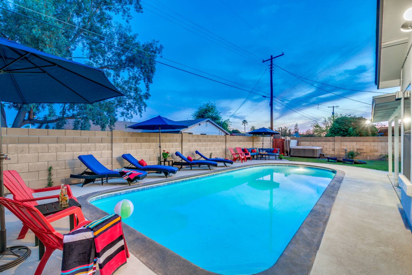 The home is located in an area that allows for automated grocery delivery! You can order your groceries online through Fry's ahead of time and a self driving car will deliver your groceries to the front of the home for you to pickup. Delivery only costs $5.95! Message owner for details. Heated Pool: Please note that while spa heating is included in every reservation, pool heating (if needed) is available for $75/day or $350/wk, so definitely let us know before your arrival if you want to enjoy a heated swimming pool during your visit! (Hint: Usually only necessary during winter or early spring months.) The home is good for couples, business travelers, families, and big groups. The bedroom layout is as follows: Master Bedroom: King Bed with Ensuite Bathroom with Rain Shower; 43" TV and door to the pool. 2nd Master Bedroom: King Bed with Ensuite Bathroom and 43" TV 3rd Bedroom: 1 Queen Bed few steps to the hall bathroom and 43" TV 4th Bedroom: 2 Full Beds few steps to the hall bathroom and 43" TV Extra Sleeping: Pull out queen bed in Family Room and 65" TV